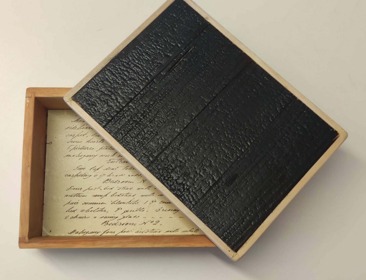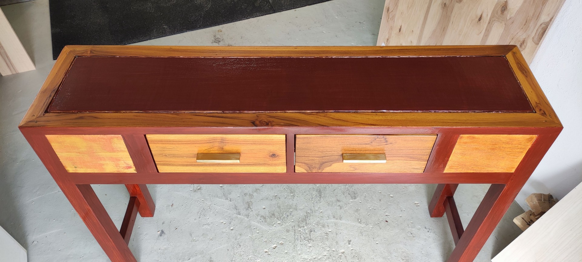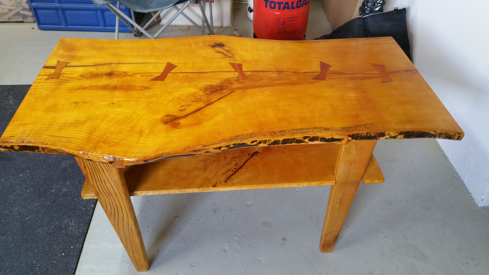 Eine alte Eichenbohle mit Riss. Hier wurden Butterflys eingelassen, um den Riss zu fixieren.