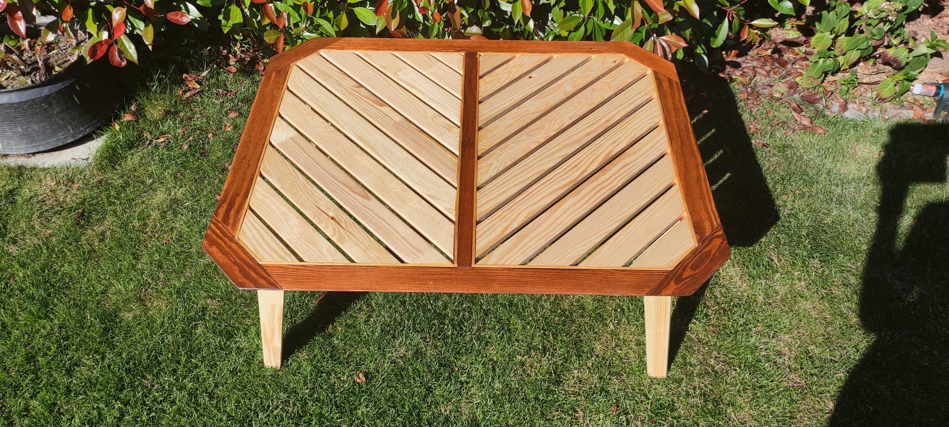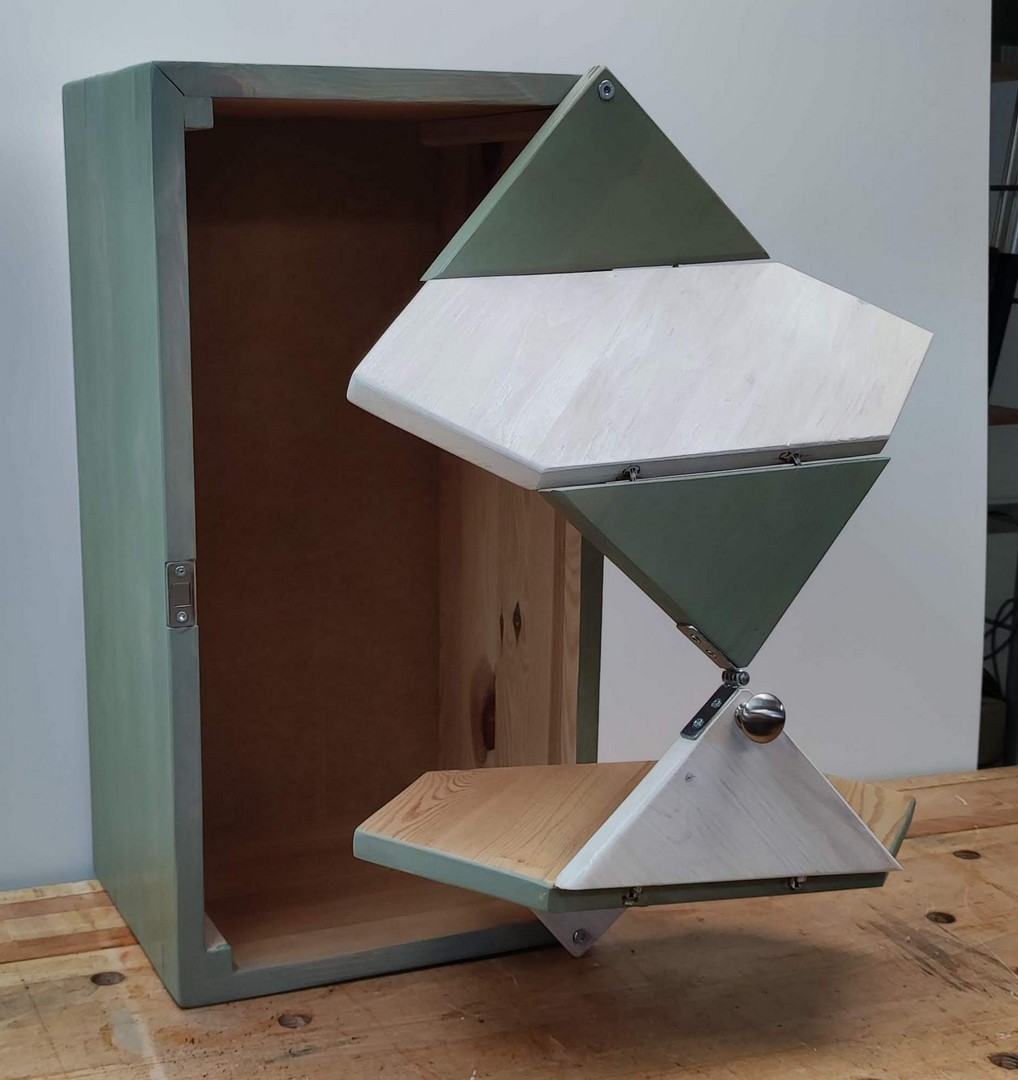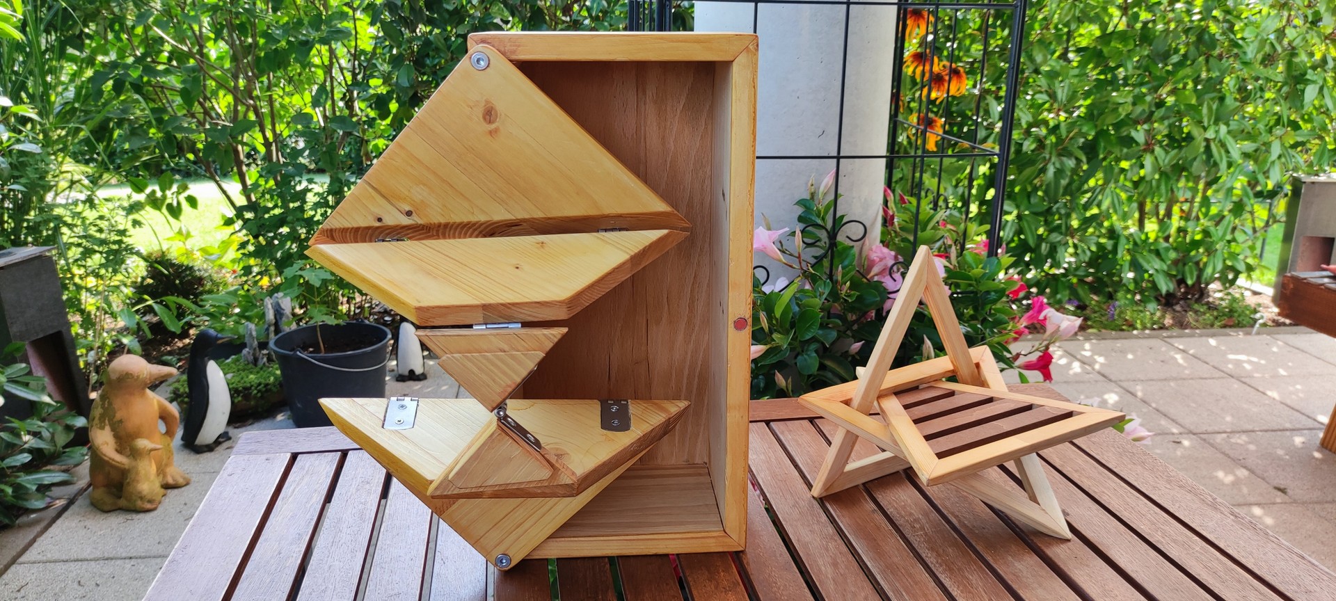 Ein Blumenständer aus 3 Dreiecken gebaut.